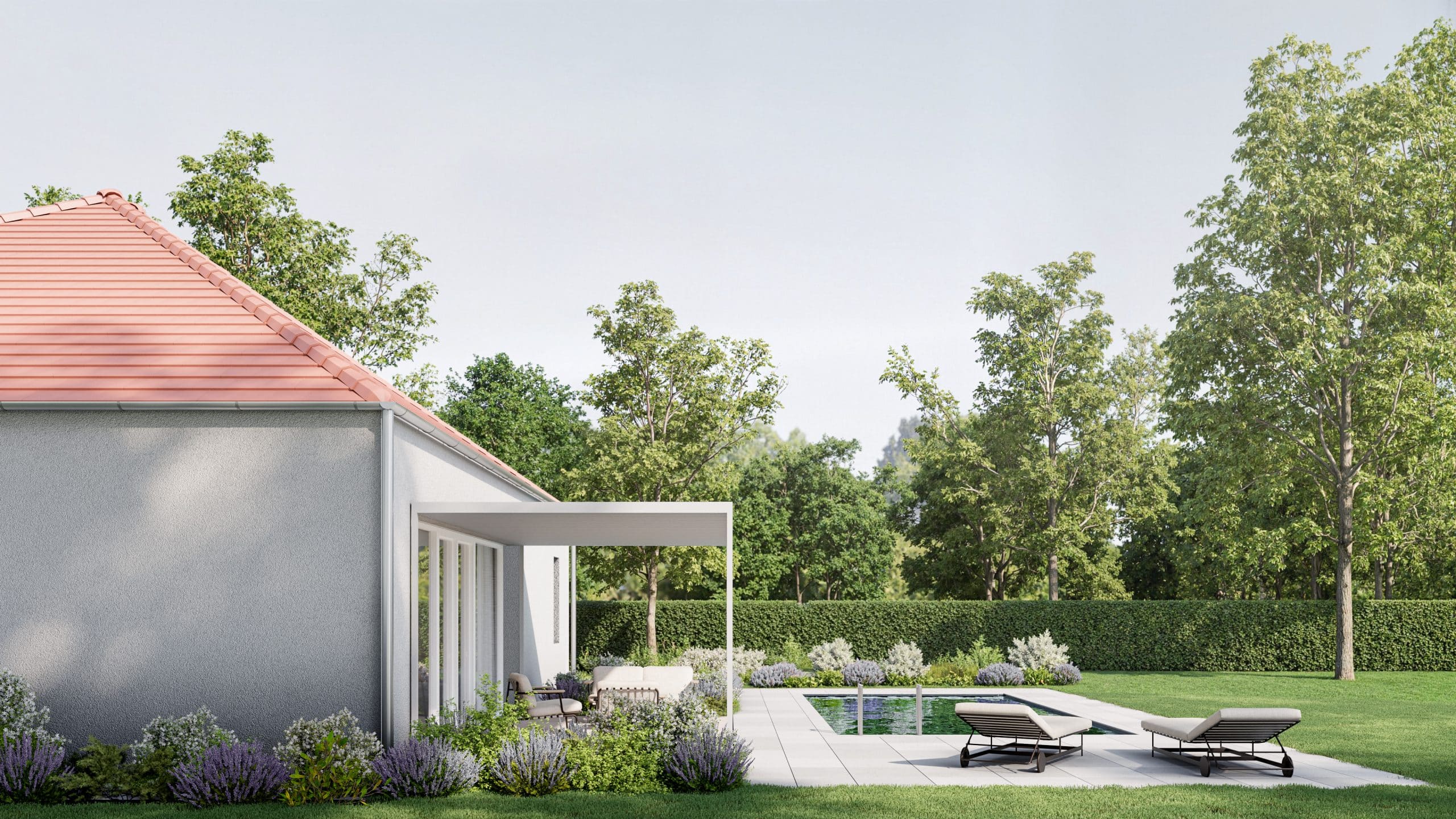 Az ALBA ház a modern egyszerűség, a természetes elegancia és a letisztultság időtálló stabilitásának harmóniáját képviseli. Visszafogott, mégis karakteres megjelenése minden részletében a kényelmet és a funkcionalitást szolgálja. A 109 m²-es élettér világos, logikusan szervezett terekkel biztosít kényelmes mindennapokat: a tágas nappali és konyha központi helyet kap, a három hálószoba pedig nyugodt visszavonulást nyújt. A terasz természetes átmenetet képez a belső és külső világ között, így az ALBA otthona egyszerre praktikus, elegáns és maradandó értékű.